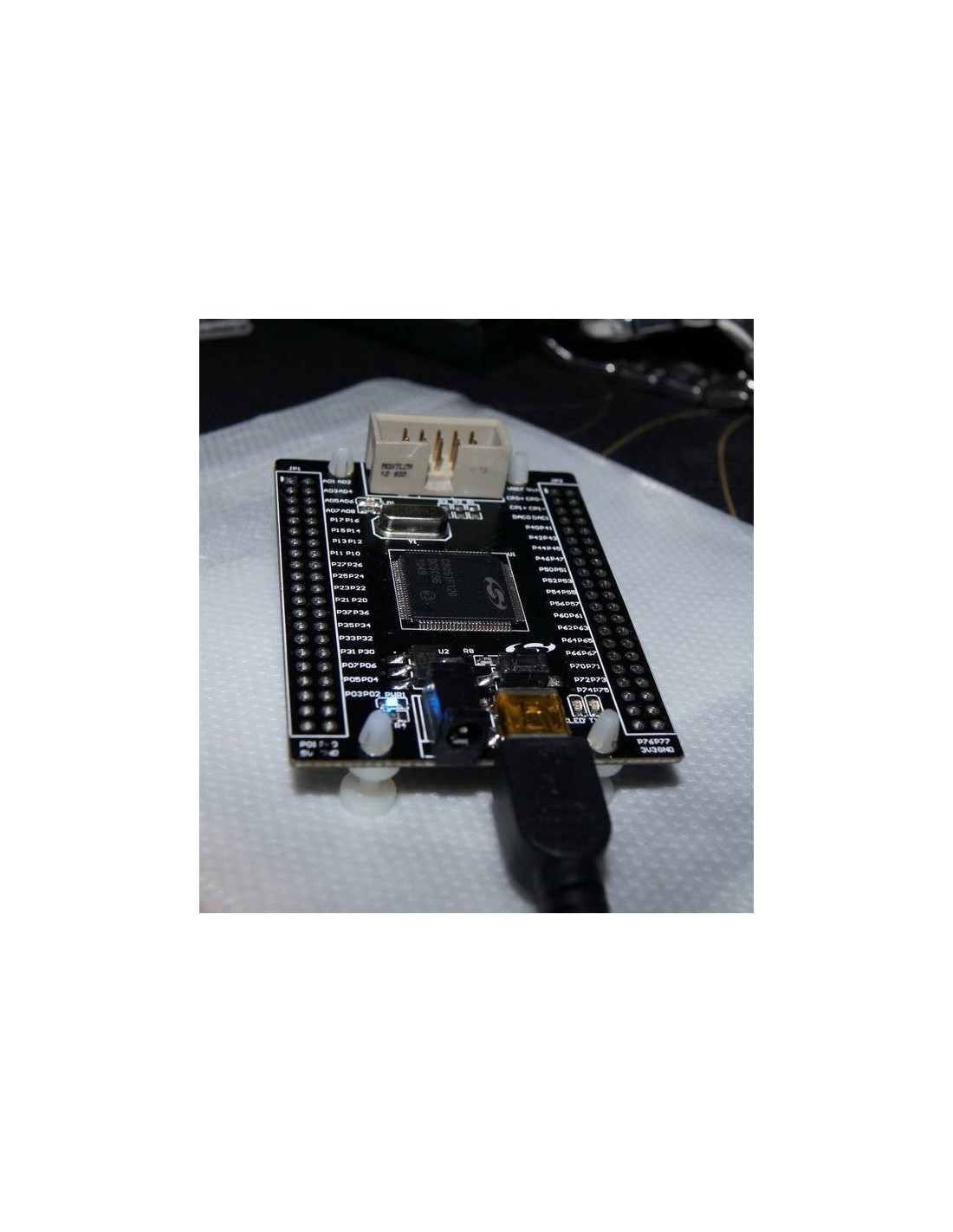 C8051F120 Development Board é uma placa de desenvolvimento baseada nos microcontroladores da família C8051F120/1/2/3 da Silicon Labs. Esses dispositivos são MCUs de sinal misto altamente integrados, com núcleo compatível com 8051, projetados para aplicações que exigem alto desempenho, conversão analógica precisa e múltiplas interfaces de comunicação.