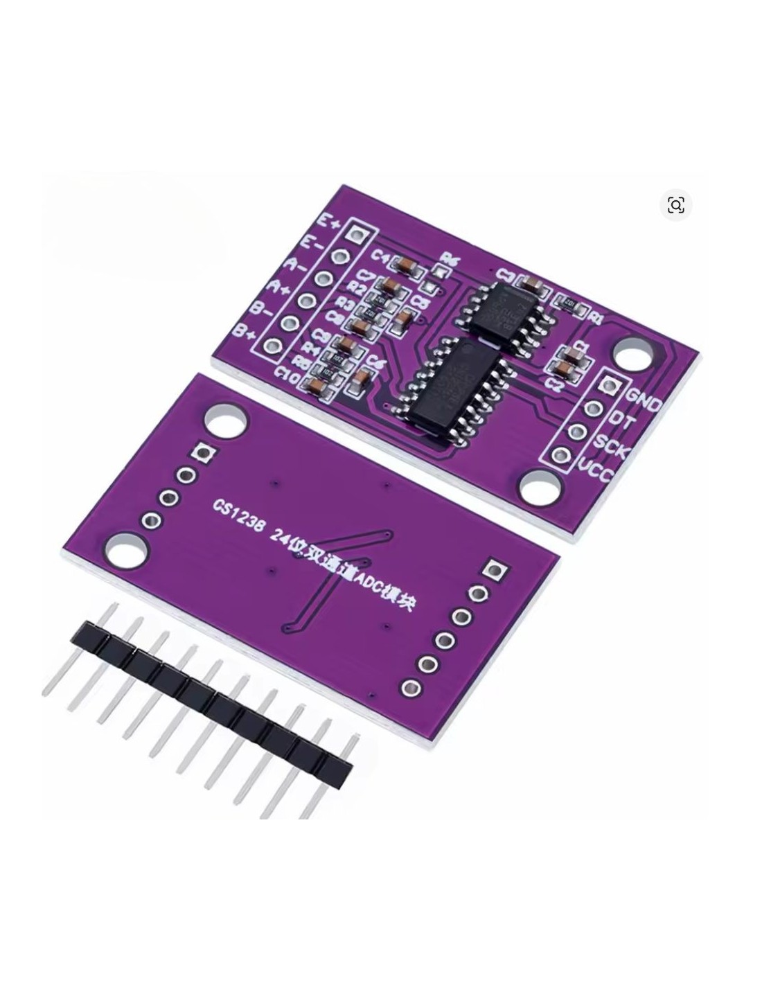 Este módulo ADC compacto utiliza o CS1238, um conversor analógico‑digital de 24 bits de alta precisão, ideal para medições de baixa tensão, sensores de carga, instrumentação e aplicações industriais.