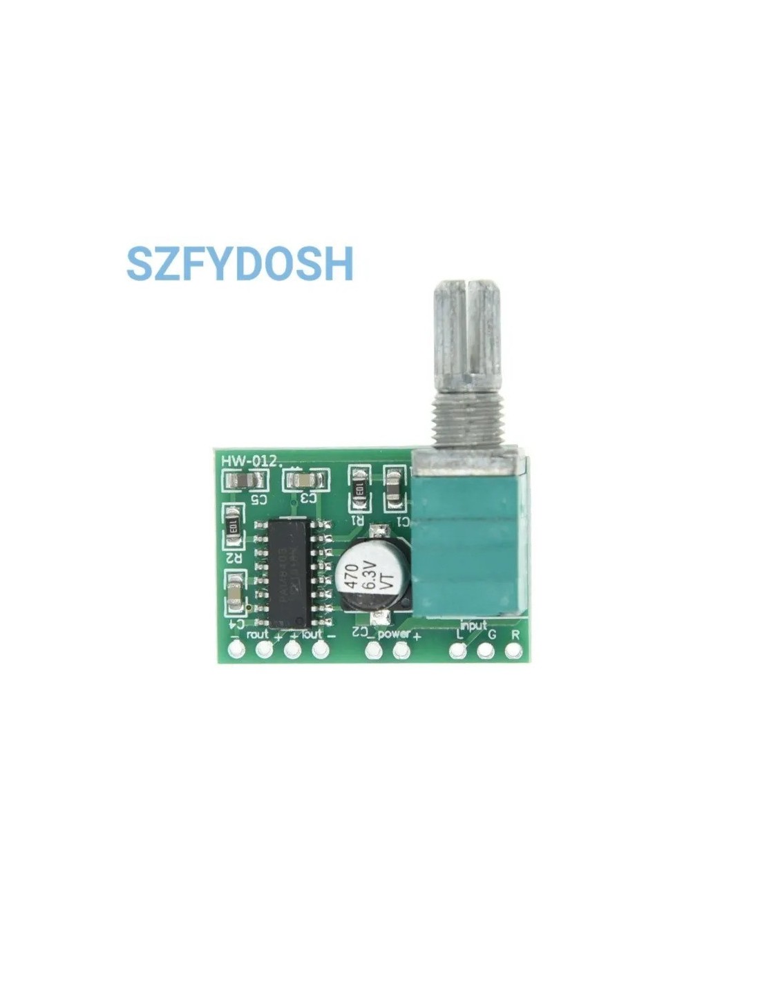 - Chip controlador: PAM8403 (Diodes Inc.)