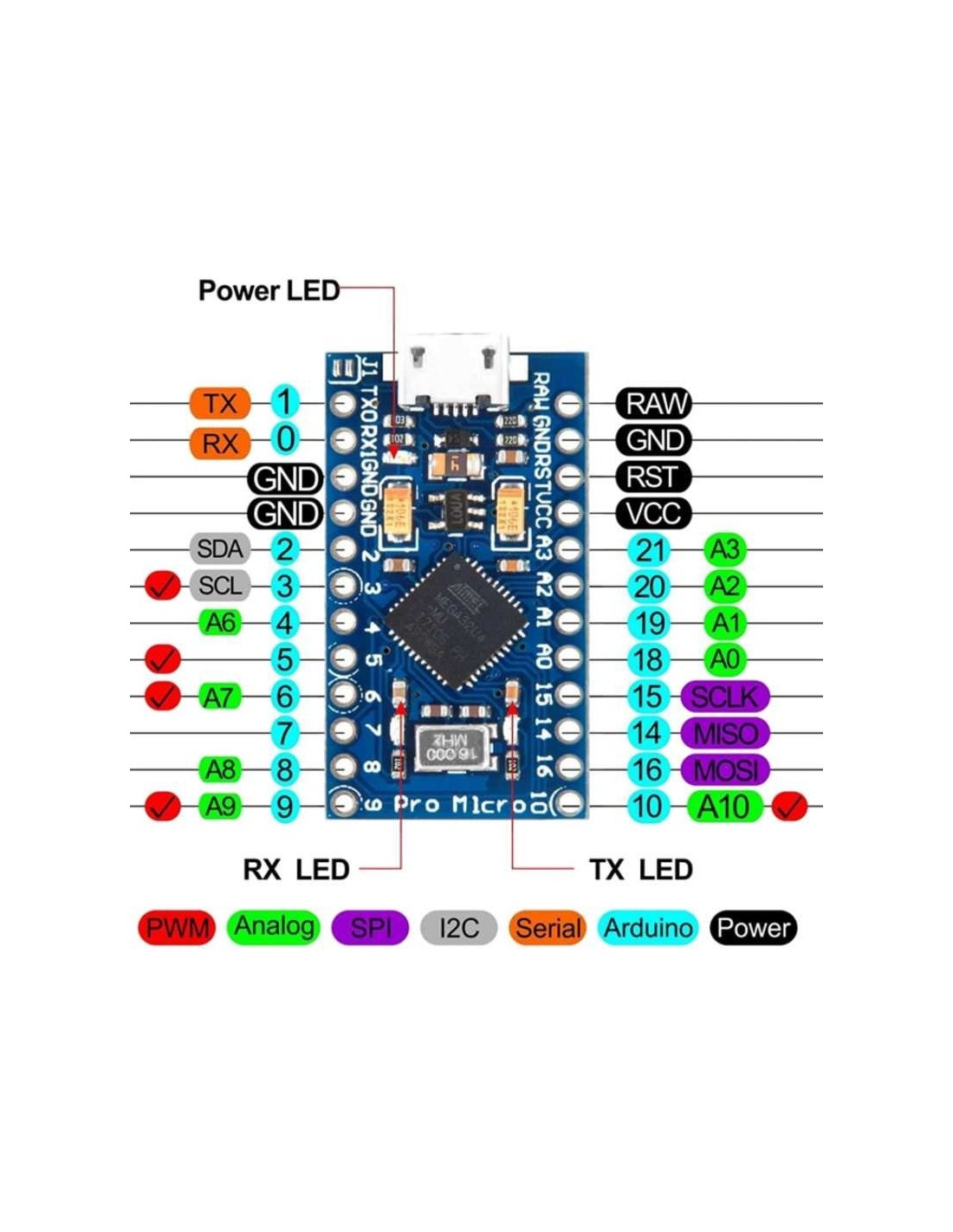 - Microcontrolador: ATmega32U4
