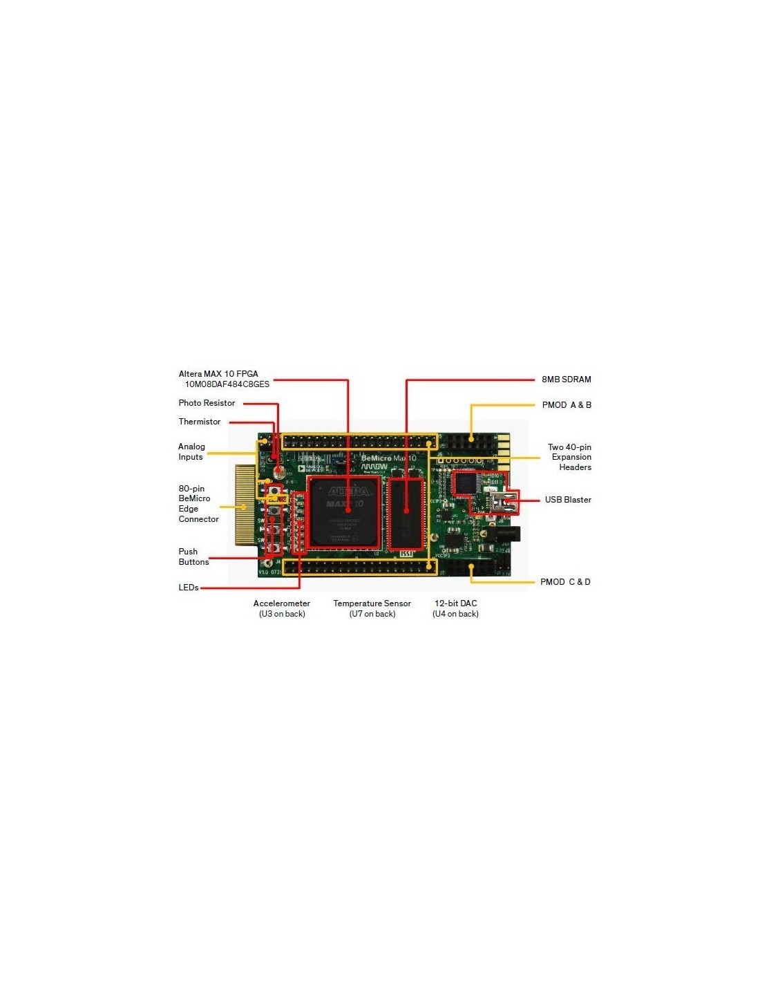 O BeMicro MAX10 é um kit de avaliação FPGA da Altera (Intel) baseado no MAX 10 FPGA (10M08). Ele é usado para aprendizado e prototipagem de lógica programável, com recursos integrados como SDRAM, acelerômetro e USB-Blaster embutido. O preço típico varia entre R$ 248 e R$ 2.436, dependendo da versão e fornecedor.