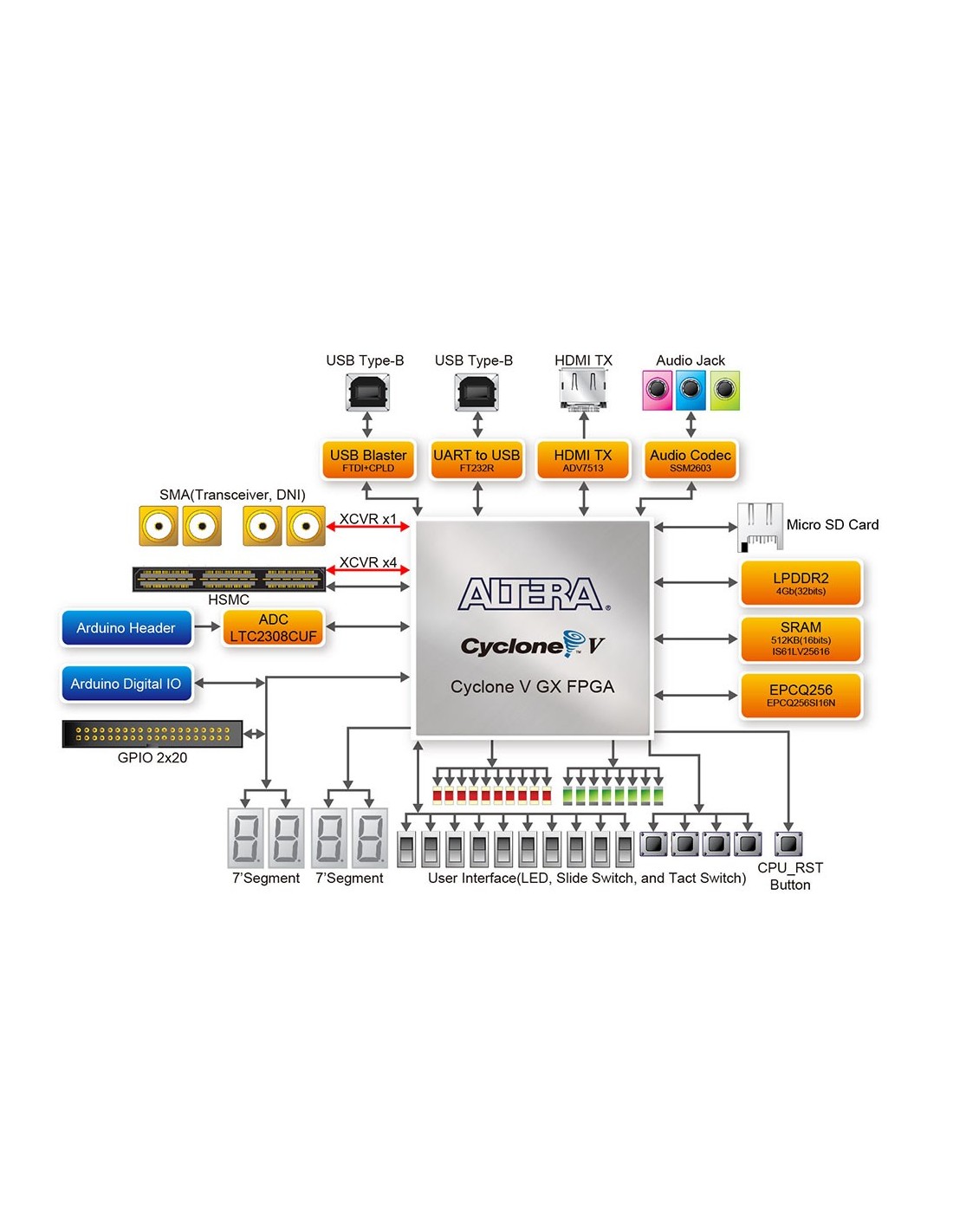 - FPGA principal: Cyclone V GX 5CGXFC5C6F27C7N