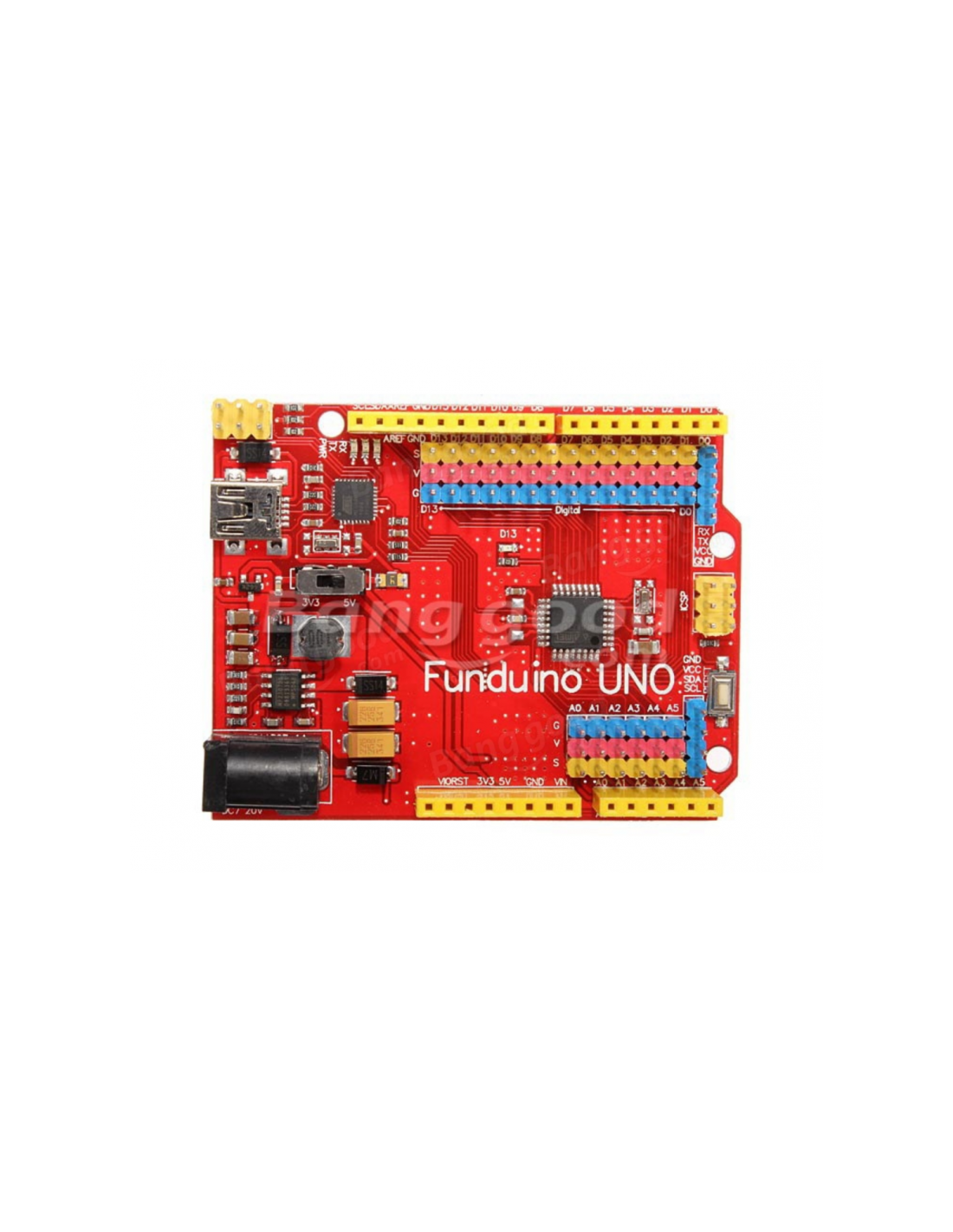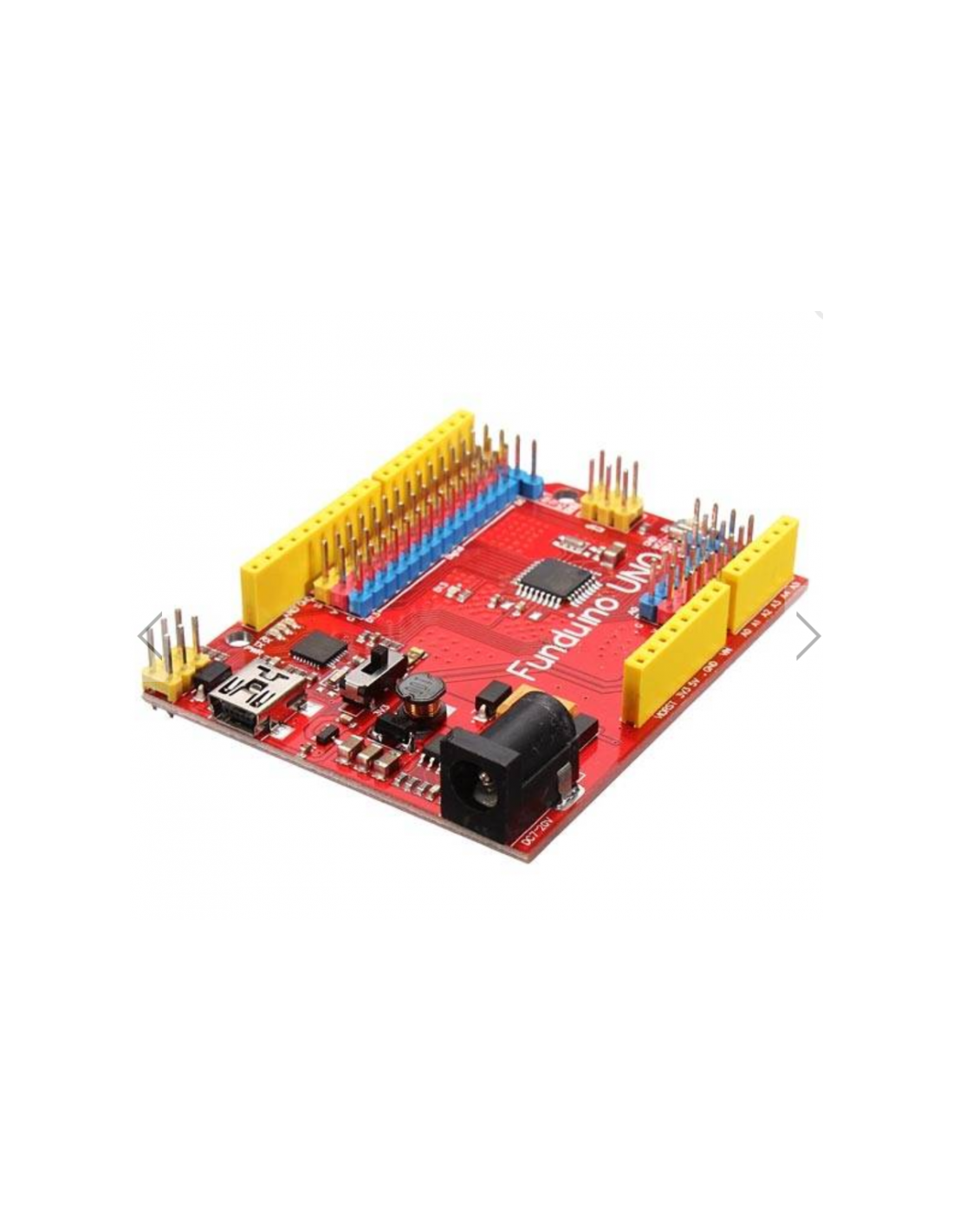 3. More obvious LED indication. Arduino lights when there is an expansion board will be blocked when plugged in, you can not see PWR, TX and RX indicators. Funduino moved the indicator to board edge, even with expansion board can also see the light.