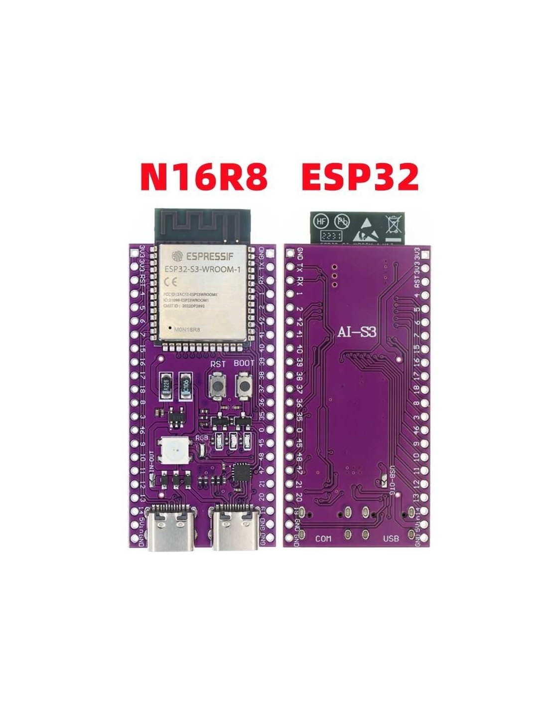- A ESP32‑S3‑DevKitC é a placa de desenvolvimento oficial, trazendo USB‑C, regulador, botões e headers, facilitando a prototipagem e testes.