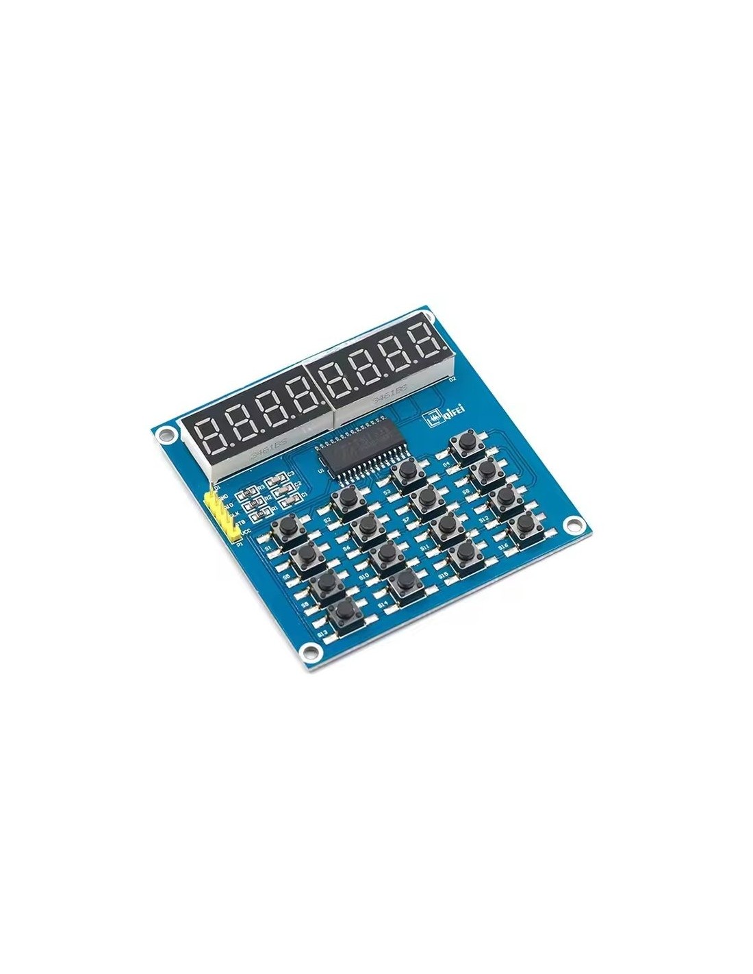 O TM1638 Display Module é uma placa compacta e multifuncional que combina 8 dígitos de 7 segmentos, 8 LEDs individuais e 16 teclas, tudo controlado por apenas 3 fios graças ao driver integrado TM1638. É ideal para projetos de microcontroladores, painéis de controle, protótipos, instrumentos digitais e interfaces de usuário simples e eficientes.