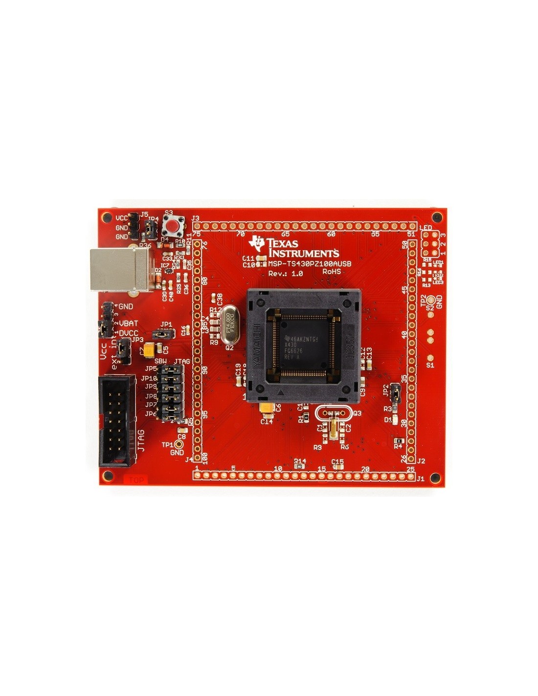 O MSP-TS430PZ100AUSB é uma placa de desenvolvimento da Texas Instruments com soquete ZIF de 100 pinos projetada para MCUs da família MSP430FG6x. O preço atual varia entre US$ 90 e US$ 150 (≈ R$ 450–750), dependendo do distribuidor e da disponibilidade.