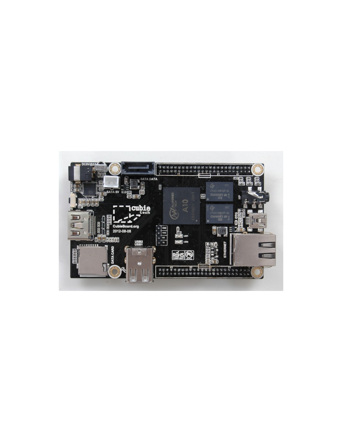 The Cubieboard 2 is a compact single‑board computer based on the Allwinner A20, designed for embedded systems, DIY projects, servers, and multimedia applications. It offers a rich set of peripherals, SATA support, and a GPIO header for hardware expansion.