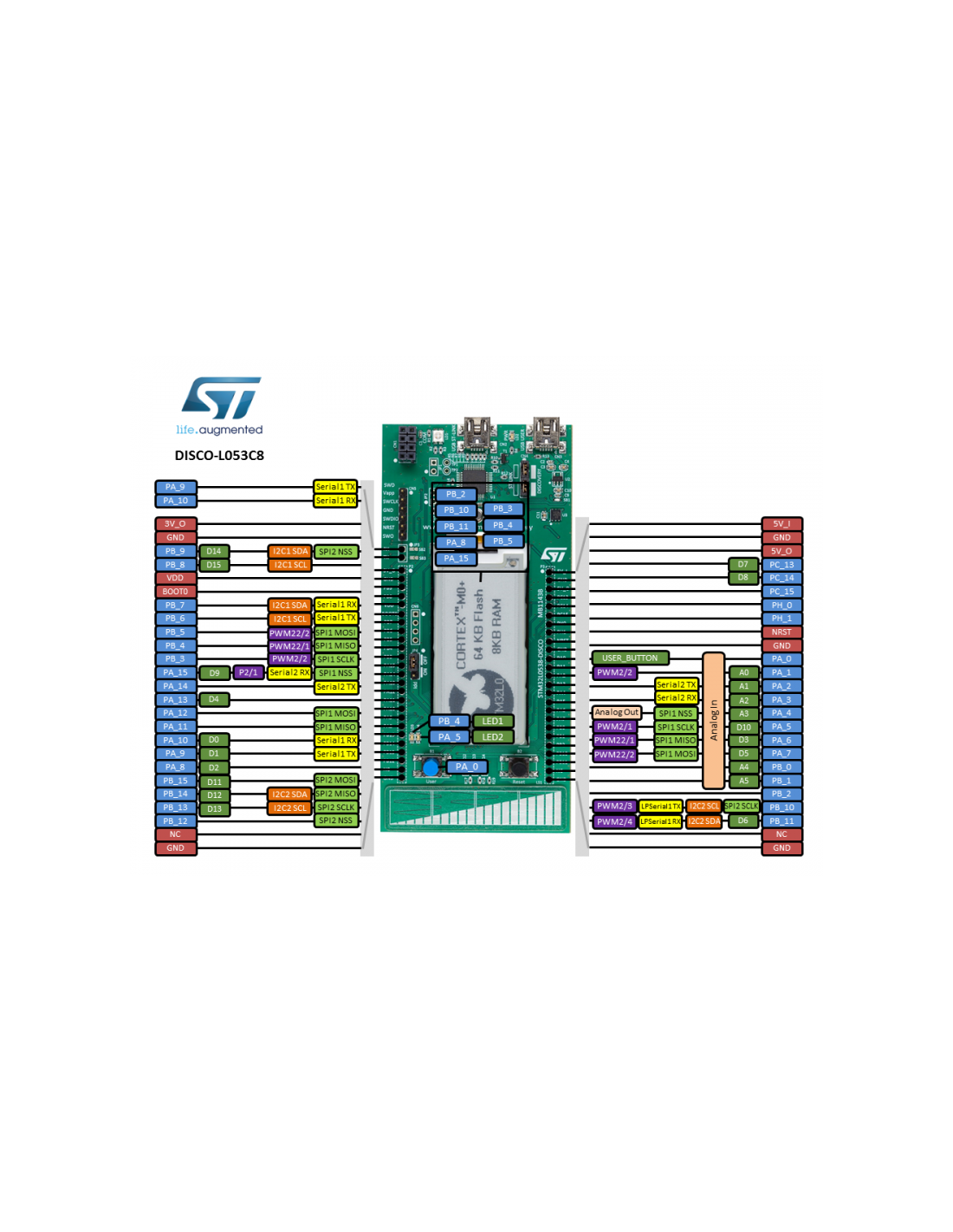 A STM32L0538-DISCOVERY (32L0538DISCOVERY) é uma placa de avaliação da STMicroelectronics baseada no microcontrolador STM32L053C8T6 (ARM Cortex‑M0+), projetada para demonstrar recursos de baixo consumo de energia e equipada com um display E‑Paper de 2,13”.