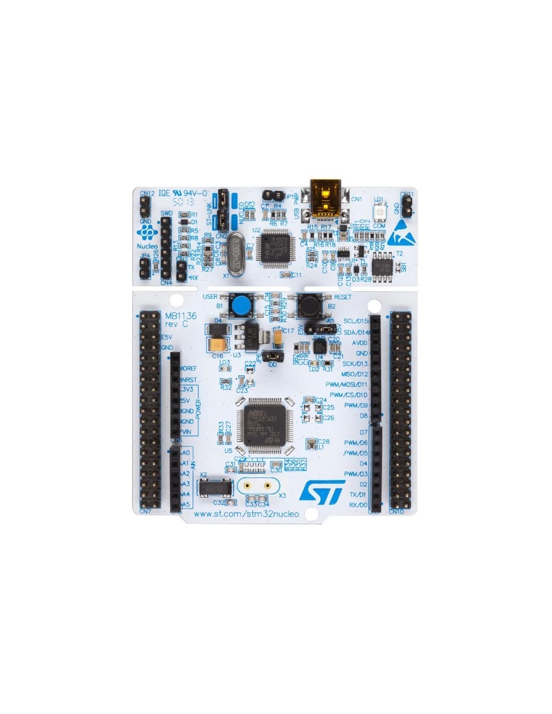 - Debug: ST-LINK/V2-1 integrado (sem necessidade de programador externo)
