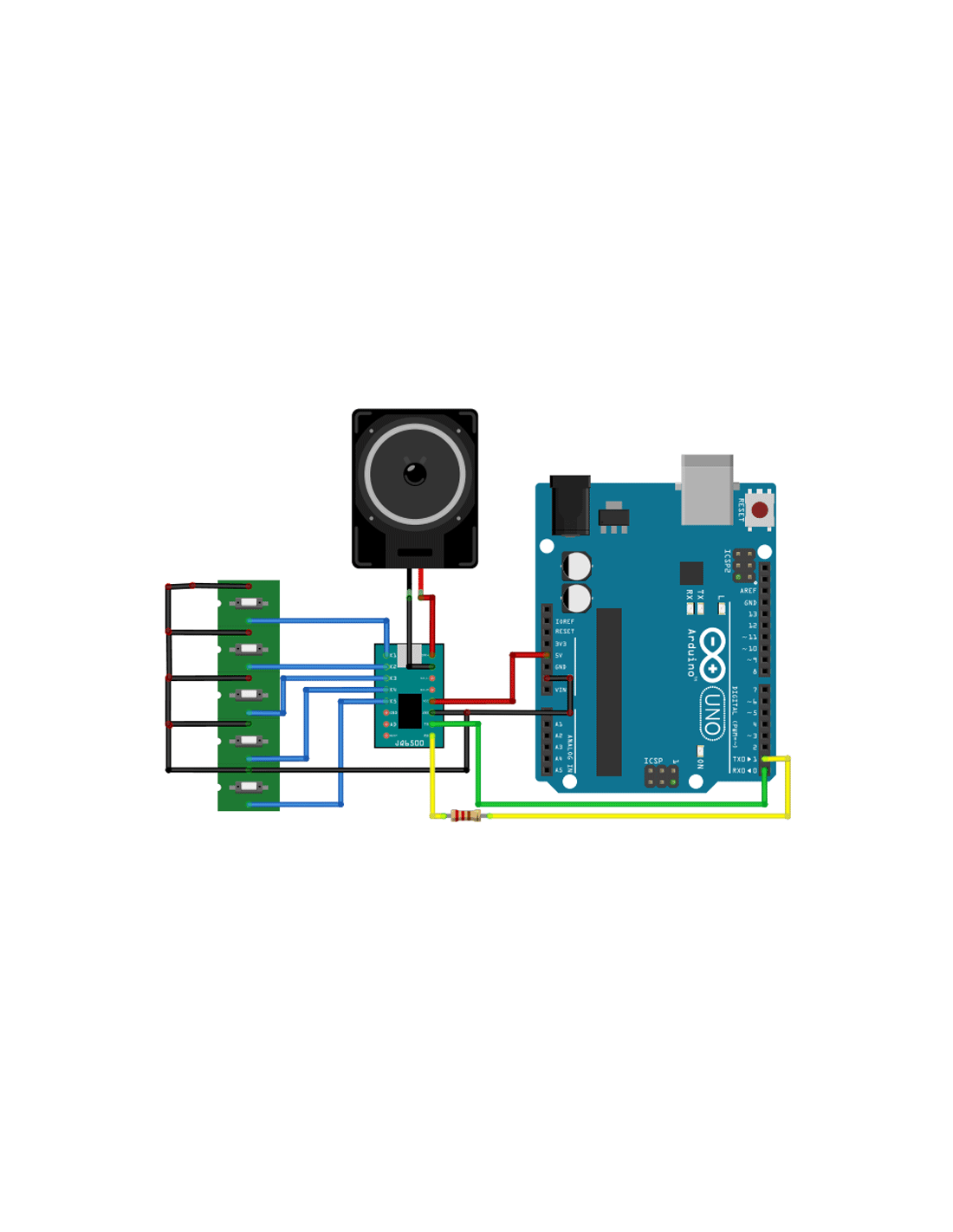 O módulo pode ser controlado via UART, botões físicos ou até funcionar de forma autônoma, dependendo da configuração. É amplamente utilizado em projetos de automação, brinquedos eletrônicos, sistemas de aviso, dispositivos portáteis e aplicações educacionais.
