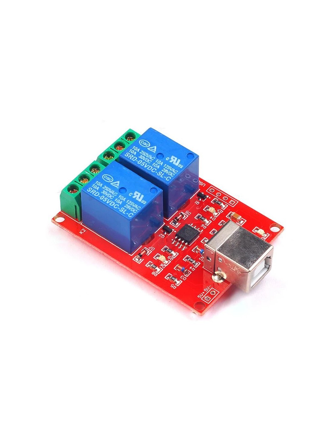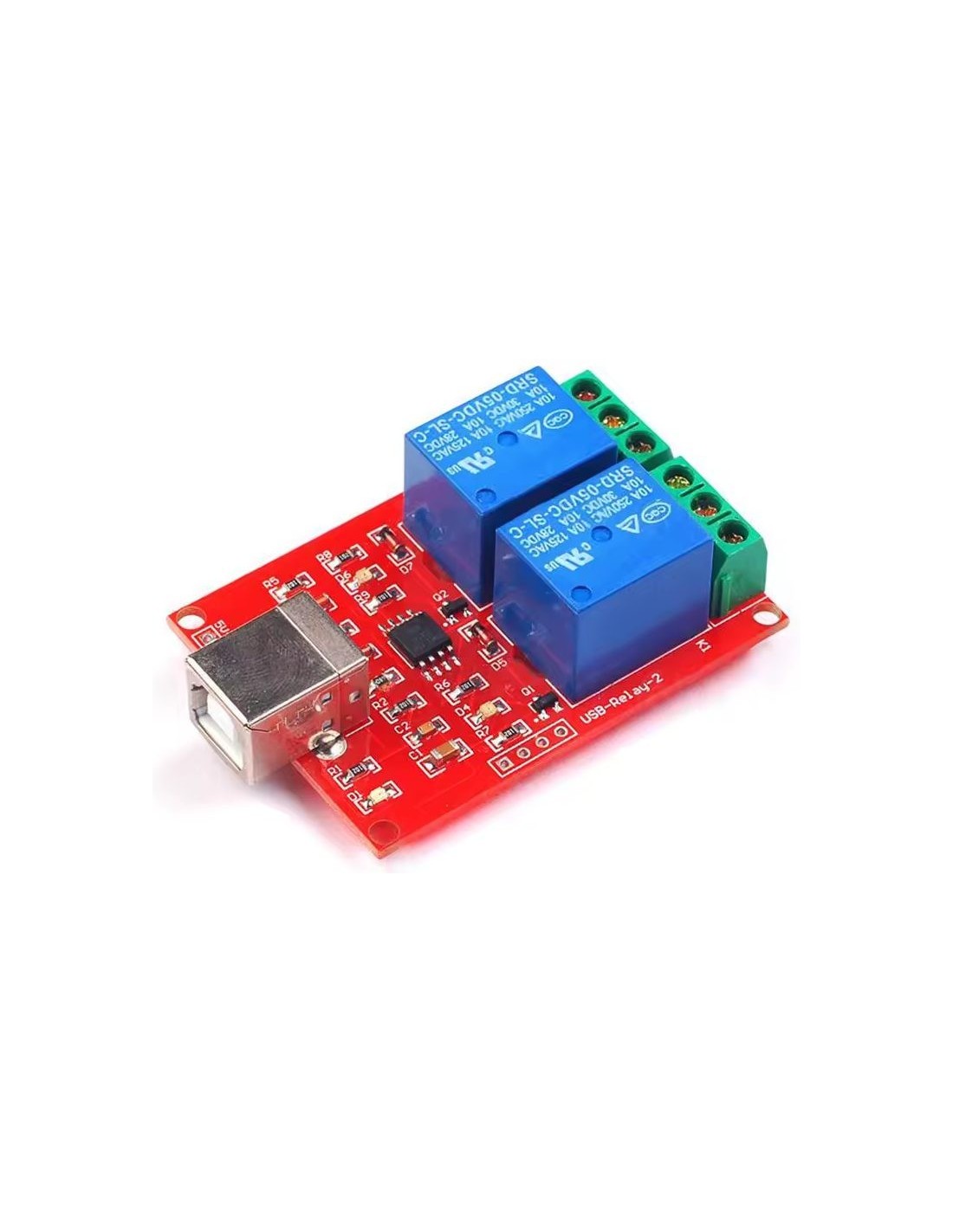 O USB Relay Module 2 Channels é um módulo compacto e eficiente projetado para controle remoto de cargas elétricas através de uma interface USB.