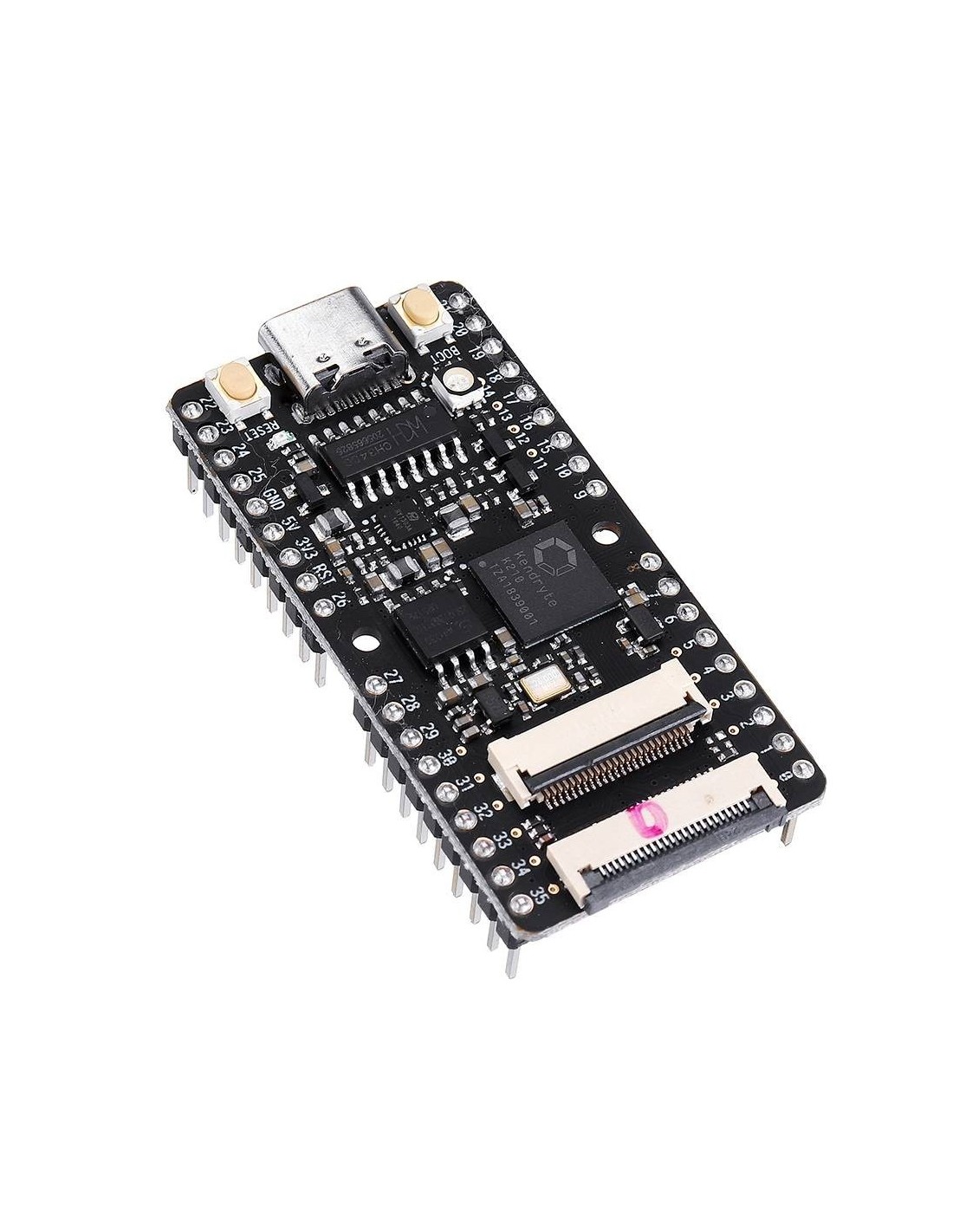- Dimensões: formato compacto, similar a placas de prototipagem estilo “dev board”