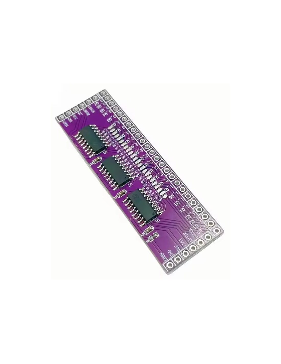 Este módulo utiliza três registradores de deslocamento 74HC595 conectados em cascata, permitindo expandir facilmente as saídas digitais de qualquer microcontrolador. A partir de apenas 3 pinos (DATA, CLOCK e LATCH), o módulo fornece 24 saídas paralelas, ideais para controlar LEDs, displays, relés, drivers, matrizes e outros dispositivos digitais.